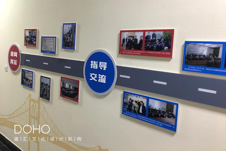 道汇文化为青岛市公路管理局打造了一楼走廊,整个企业文化建设注重整个走廊的设计统一性,设计上简洁鲜明,主题党建突出,富有层次感节奏感,切合企业文化的行业特点,受到各级领导的一致认可。